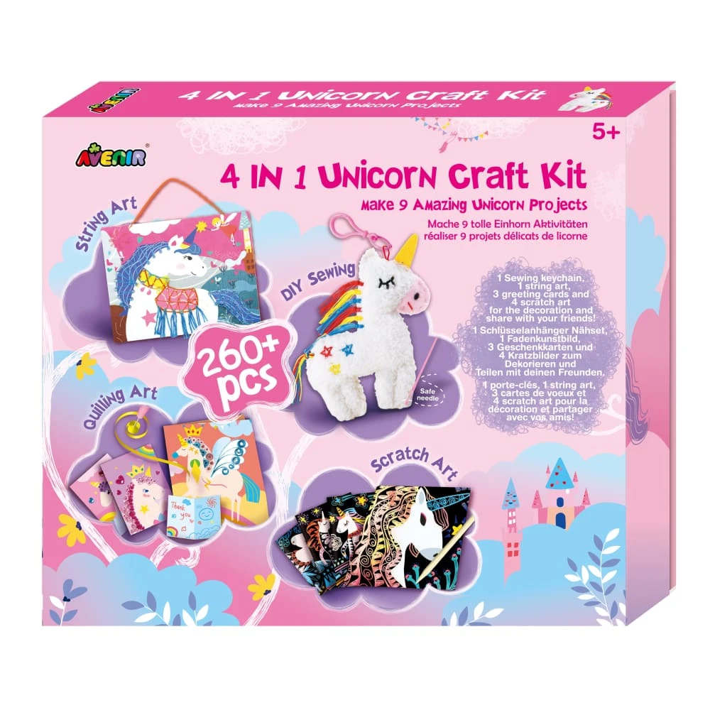 | Includes 9 unicorn projects: DIY Sewing, String Art, Quilling Art, Scratch Art and more. Kids will have endless fun with this creative kit. Age 5+ |