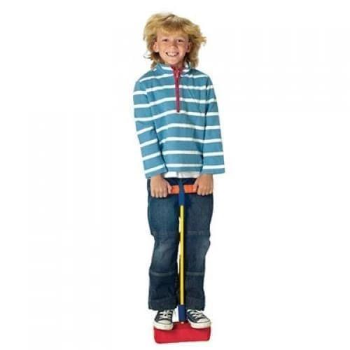 Much easier to use than a traditional pogo stick and a massive amount of fun. Simply stand on the foam base and stretch the bungee-like cord up to waist height, the whole contraption can be used to bounce around, pogo-like, both indoors and outside.