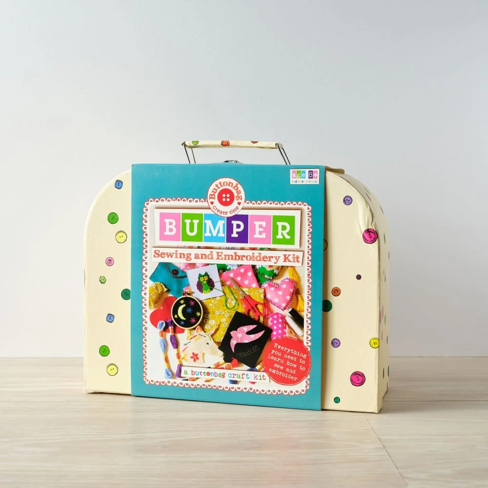 This Buttonbag BUMPER kit has everything you need to learn how to sew, cross stitch and embroider, all in one BIG suitcase!