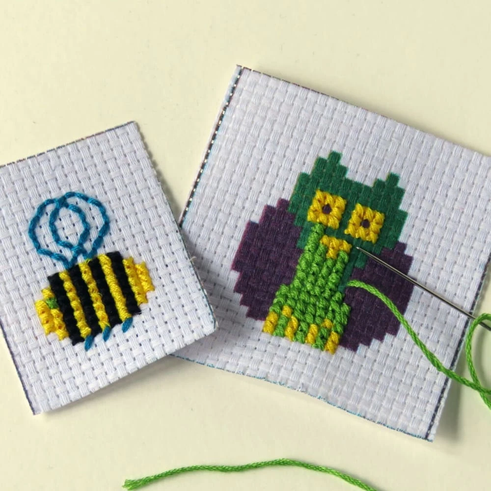 Loads of easy projects to teach skills including cutting out, hand sewing stitches, cross stitch and several easy embroidery stitches.