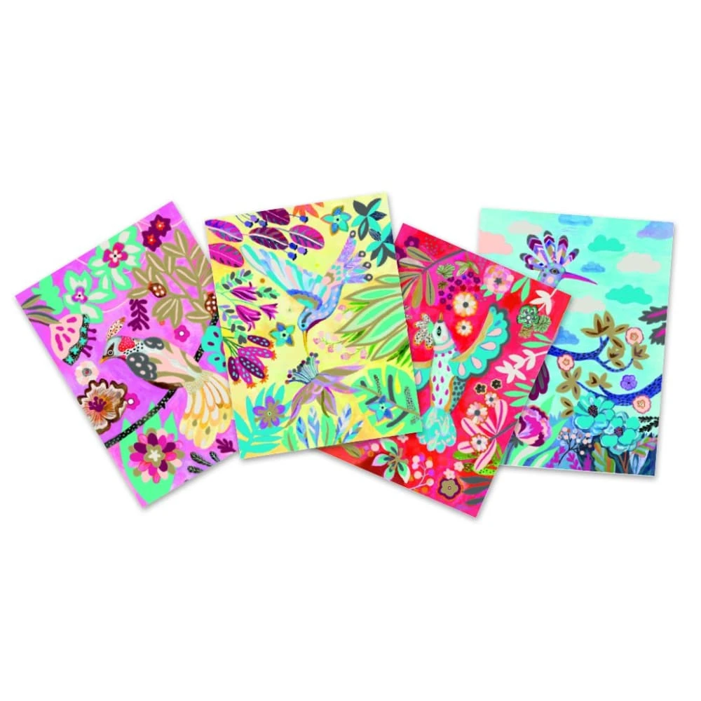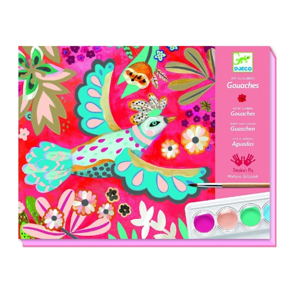 Strong, bright, gouache paints create stunningly vibrant pictures on 4 part-coloured, pre-drawn boards. Djeco’s Melody Gouache Painting includes brush and 8 coloured gouache palette.
