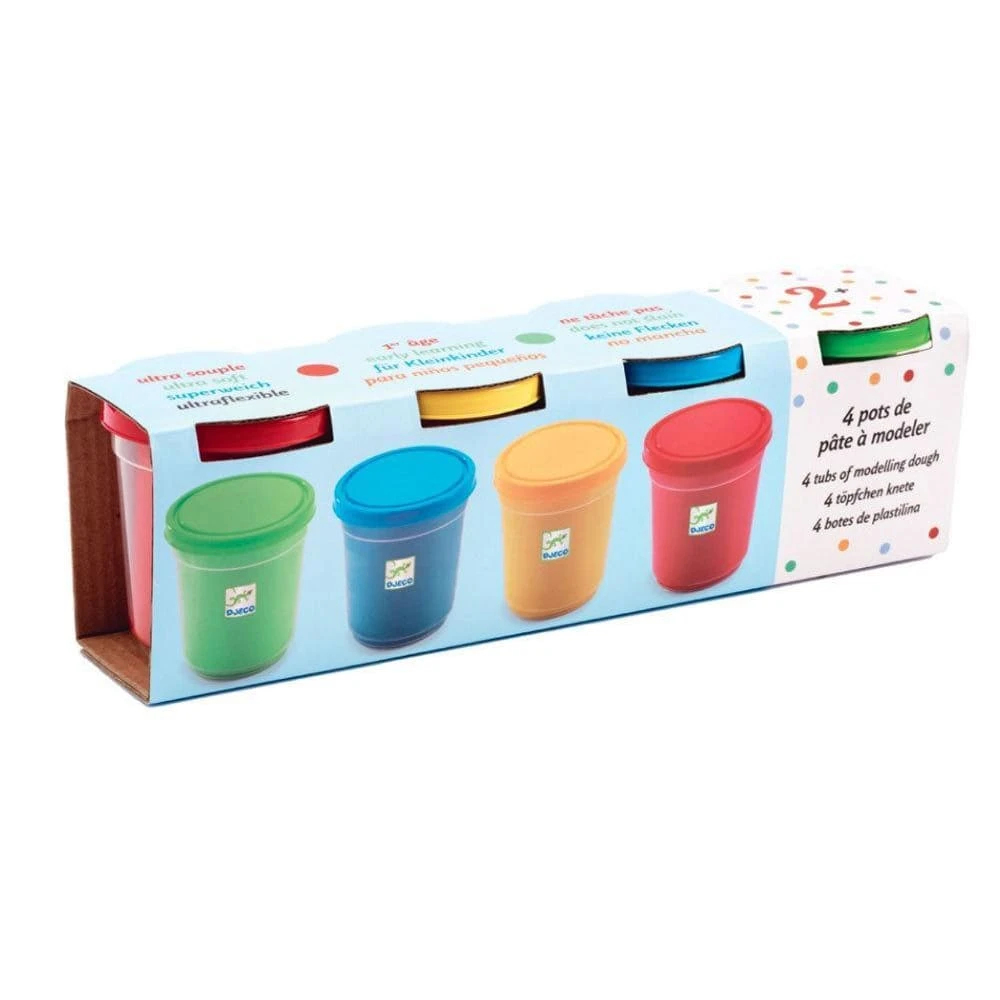 An ultra-soft texture for children’s first experiments in kneading. Includes 4 pots.