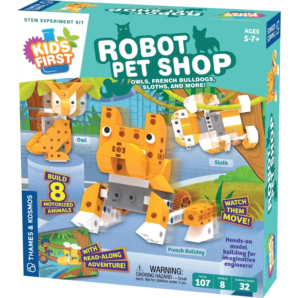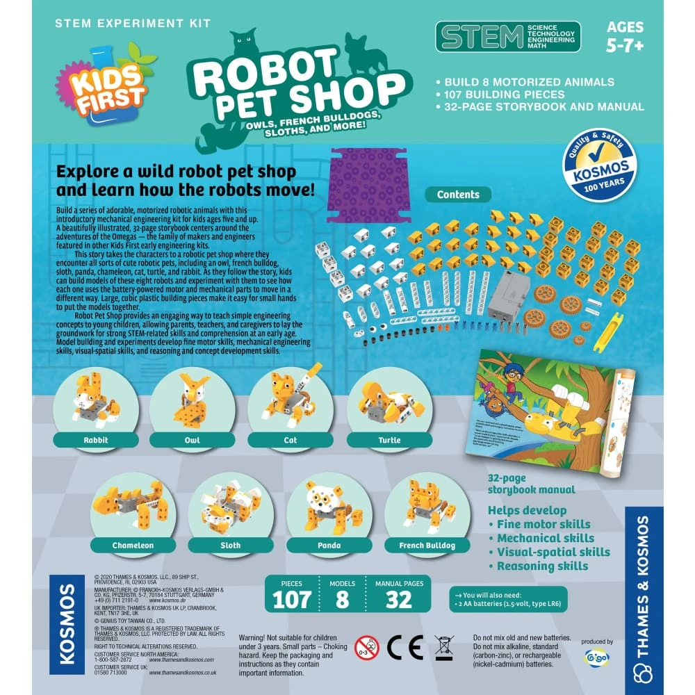 Robot Pet Shop provides an engaging way to teach simple engineering concepts to young children, allowing parents, teachers, and caregivers to lay the groundwork for strong STEM-related skills and comprehension at an early age. Model building and experiments develop fine motor skills, mechanical engineering skills, visual-spatial skills, and reasoning and concept development skills.