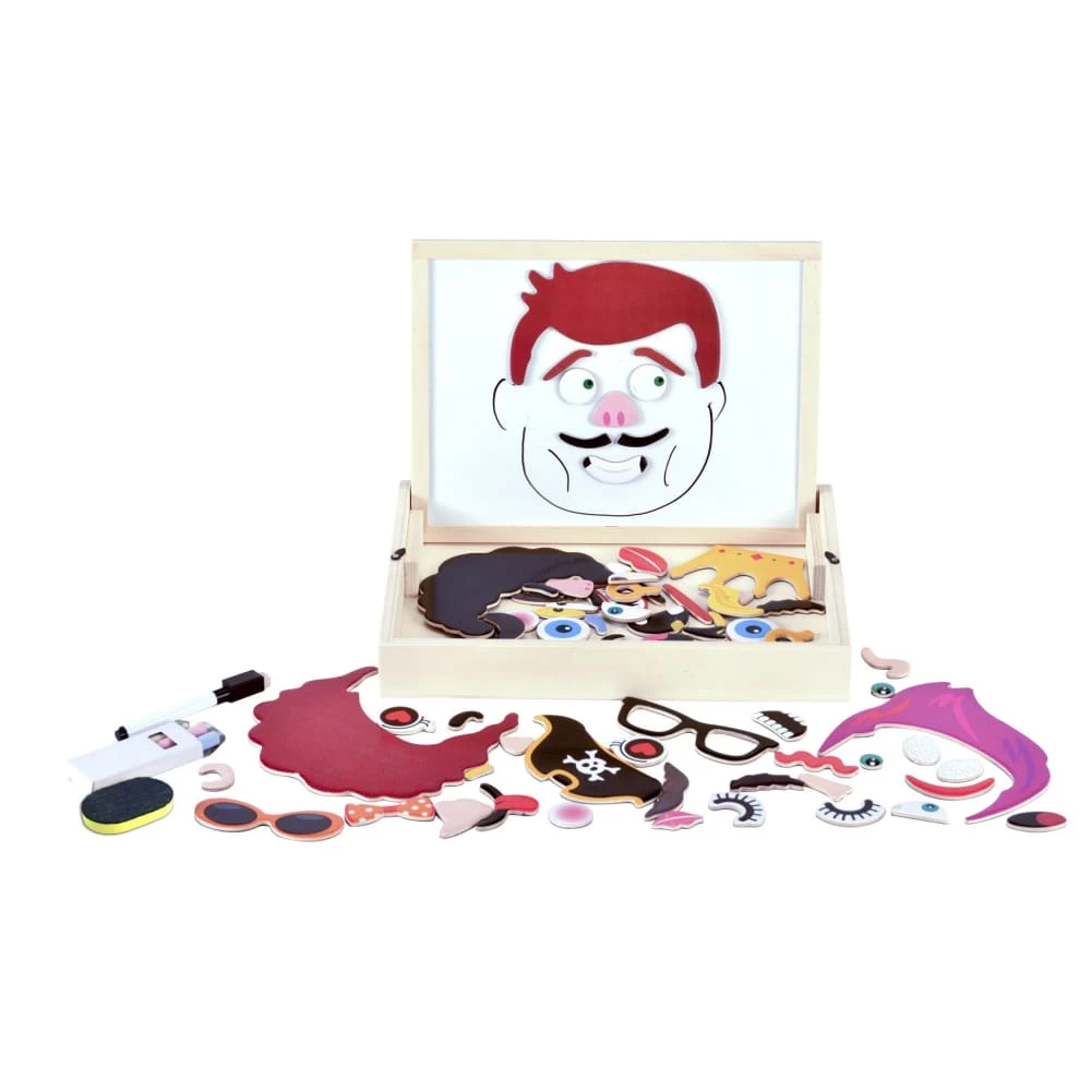 Faces Activity Box with reversible whiteboard and blackboard and lots of magnetic pieces all stored in a handy travel case.