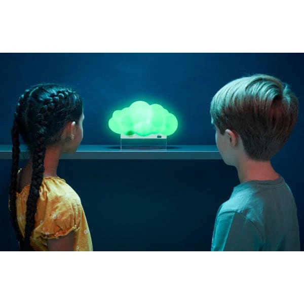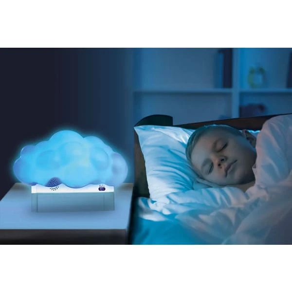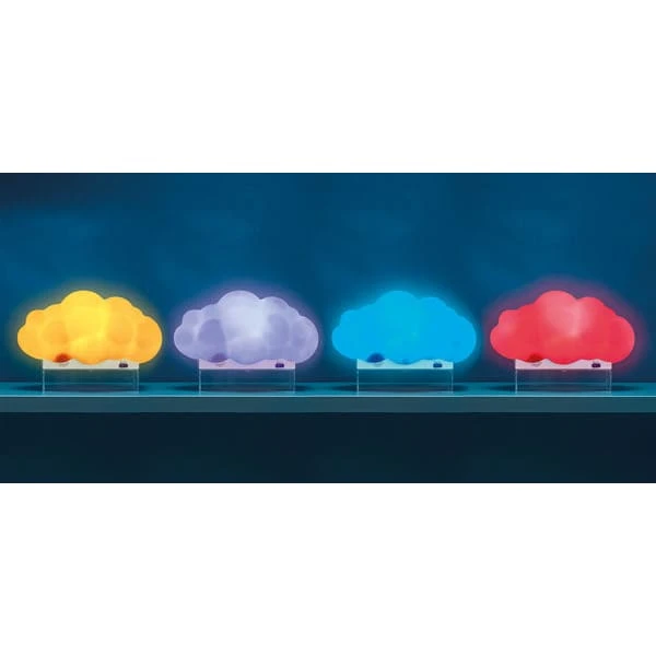 Experience a beautiful cloud in your own room. Enchanting cloud nightlight appears to float on the clear stand. Colour-change light show with rain and thunder sounds.