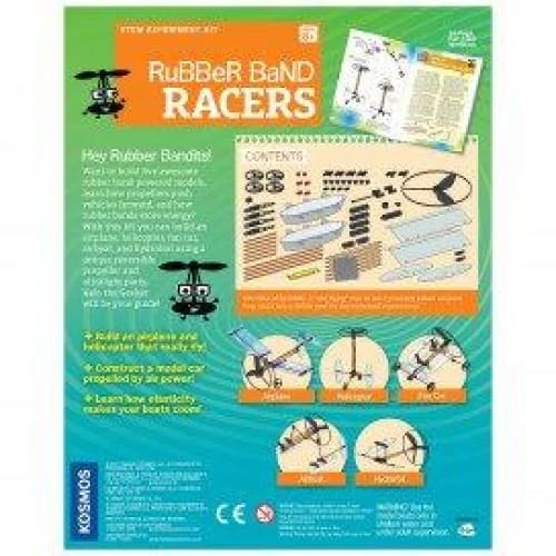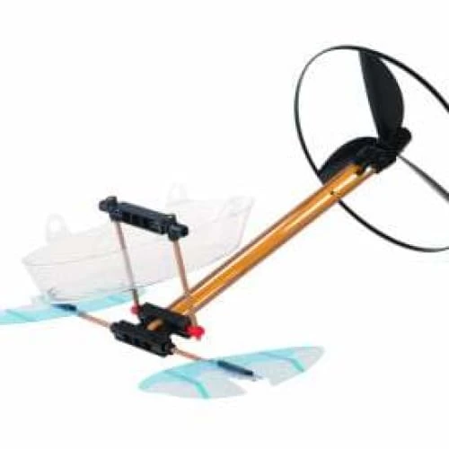 An impressively robust kit to build one of five models driven by a rubber-band-powered propeller. Great instructions for a helicopter, fan boat, airplane, car and catamaran will enthuse any budding engineer.